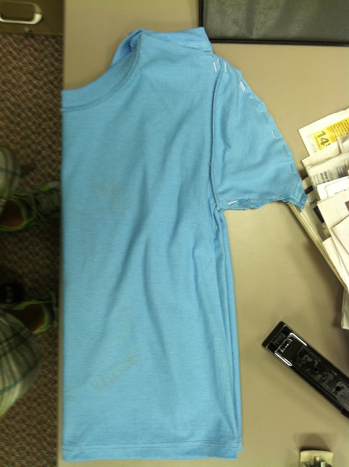6. Stuffed the sleeve and finished stapling to the bottom of the shirt.